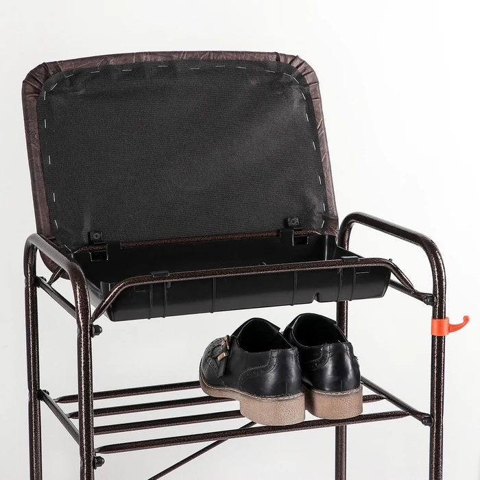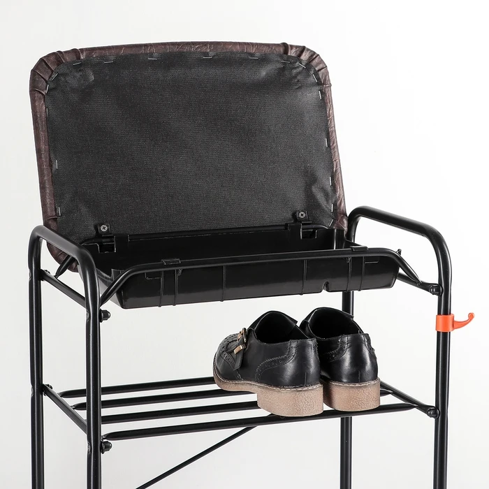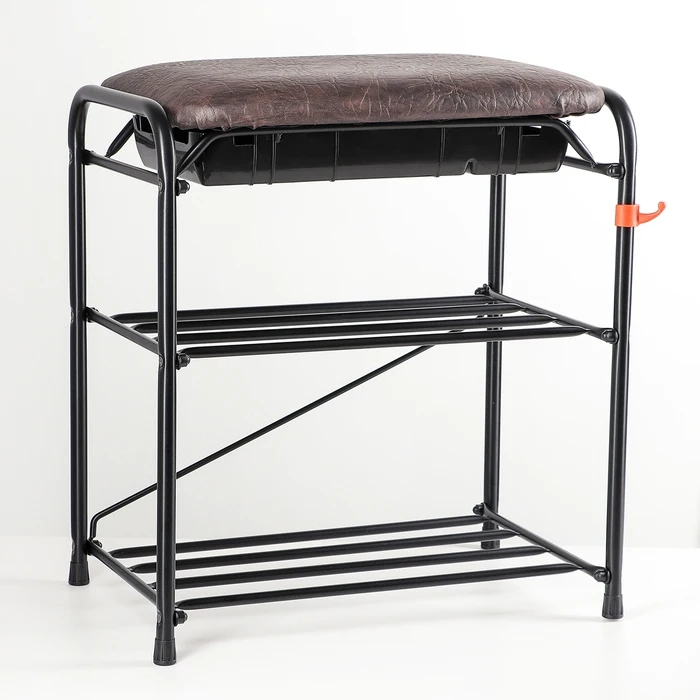 Подставка для обуви с сиденьем и ящиком ЗМИ, 3 яруса, 45×30×48 см, цвет чёрный