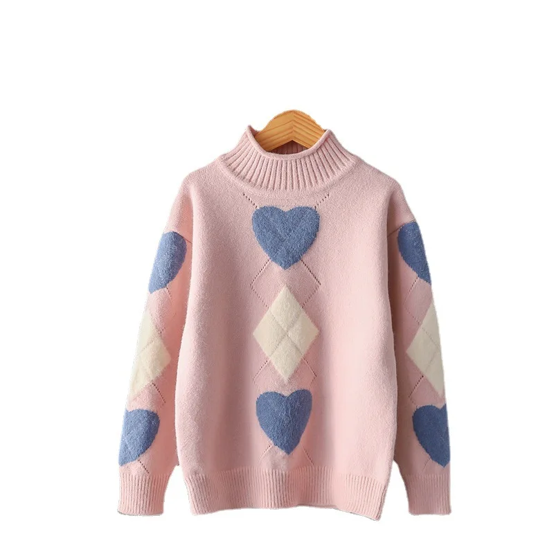 Осенний свитер для маленьких девочек; Теплый зимний плотный вязаный шерстяной свитер; Костюм с принтом «любовь»; Детские пуловеры; Свитер для подростков; Одежда![]()