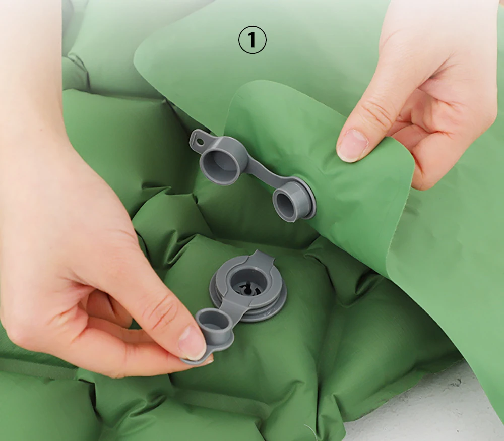 1. Откройте воздушный клапан первого слоя коврика и направьте на надувающий порт воздушного мешка.