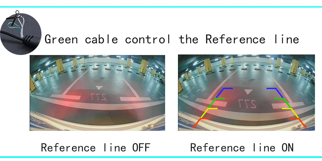 Стандартная линия ВКЛ или ВЫКЛ регулируется, по умолчанию нет справочной линии, отрежьте зеленый кабель, чтобы показать ссылку, если вам нужно. Когда вы отключите белый кабель для переключения AHD, вам нужно подключить зеленый кабель, тогда появится ссылка