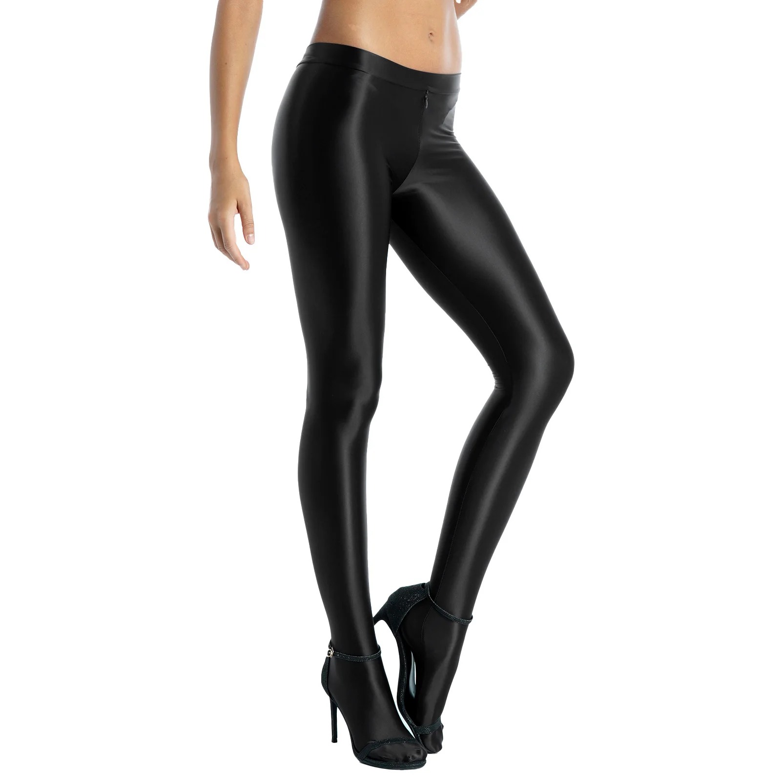 Женские глянцевые эластичные колготки, однотонные леггинсы до середины талии на молнии.