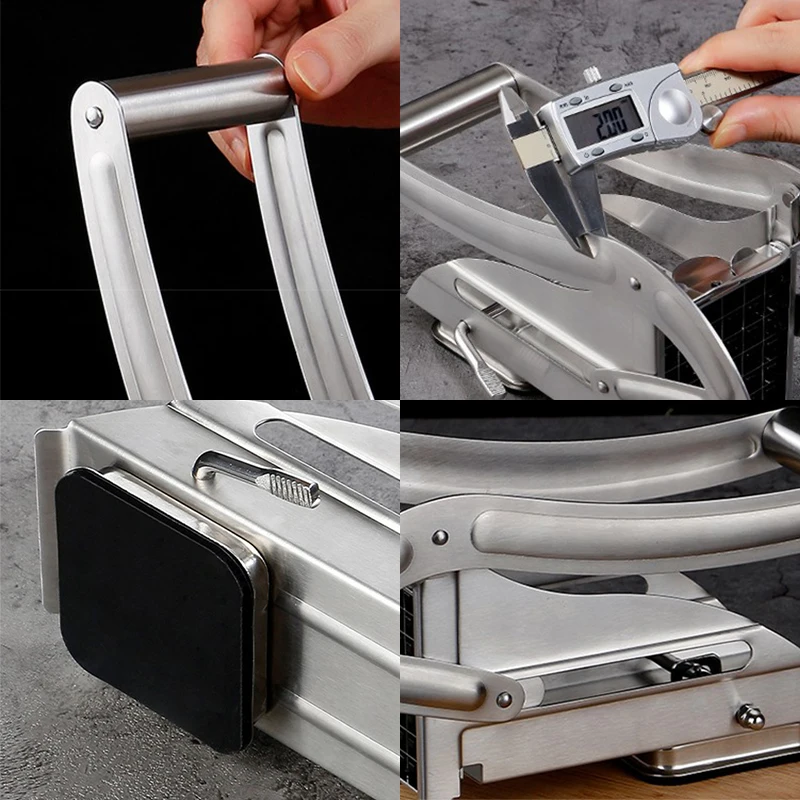 1. Если ваш размер картофеля больше, чем емкость резака, пожалуйста, сначала нарежьте его на половину размера, прежде чем использовать резак.