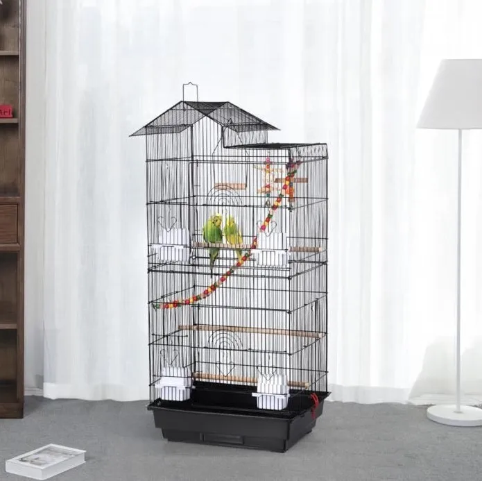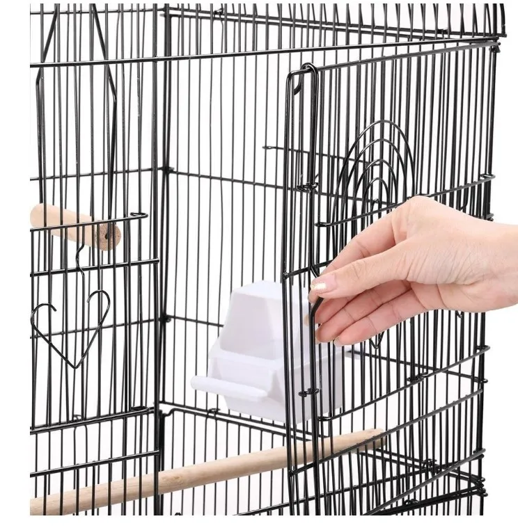 6. Структура продукта: прочная ручка расположена сверху, вертикальный стержень на передней двери может обеспечить дополнительную безопасность, расстояние между железными стержнями составляет 1 см, чтобы предотвратить птиц от Застревает, сторона клетки просторная, поверхность с порошковым покрытием, антикоррозийная и антивозрастная, легко транспортировать нижнюю сетку и шасси Тяговая пластина в нижней части клетки может быть вытянута для очистки