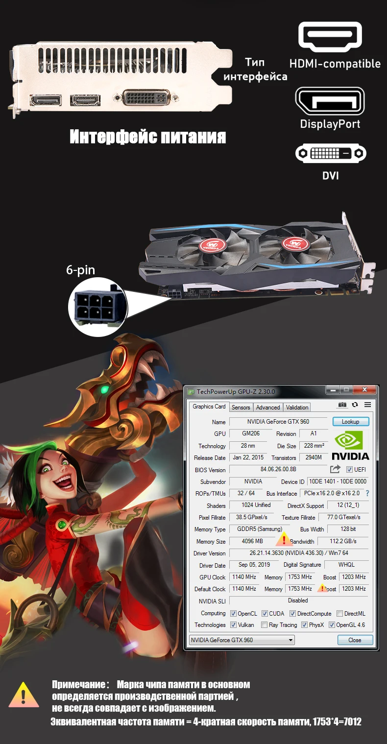 Отзывы о VEINEDA Оригинал GTX 960 4 Гб GPU 128 бит GDDR5 7012 МГц видеокарты GTX960 DVI для nVIDIA Geforce Game |