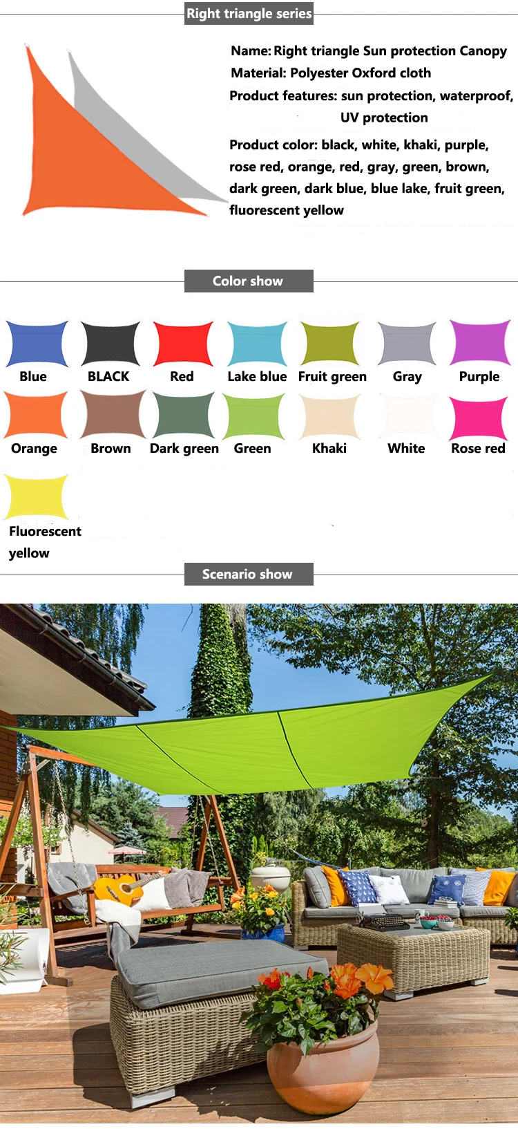 Отзывы о Наружный водонепроницаемый солнцезащитный козырек правый треугольный для сада