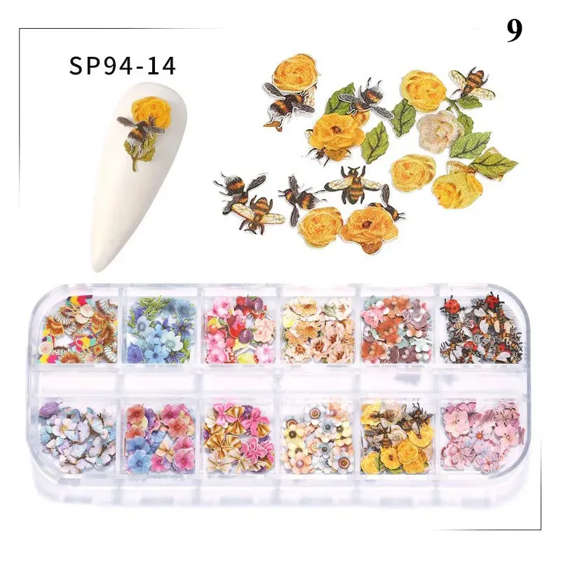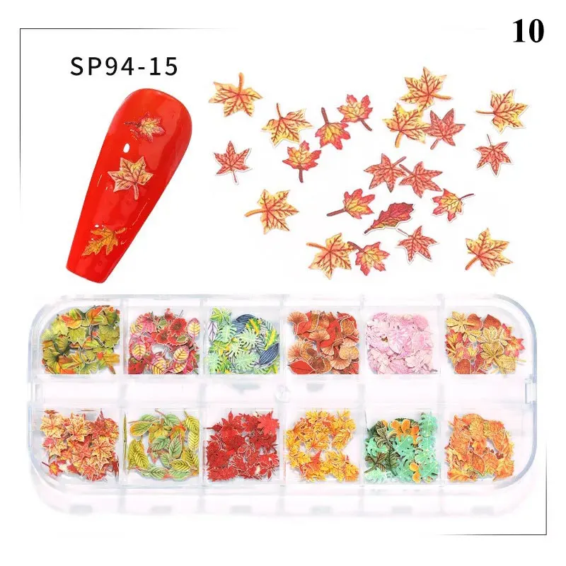 Отзывы о 12 ячеек/коробка 3D смешанные кленовые листья для ногтей блестки Рождественская