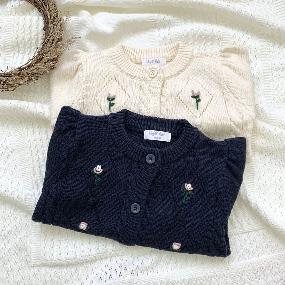 Одежда для детей; Кардиган с вышитыми цветами; Пальто; Топы