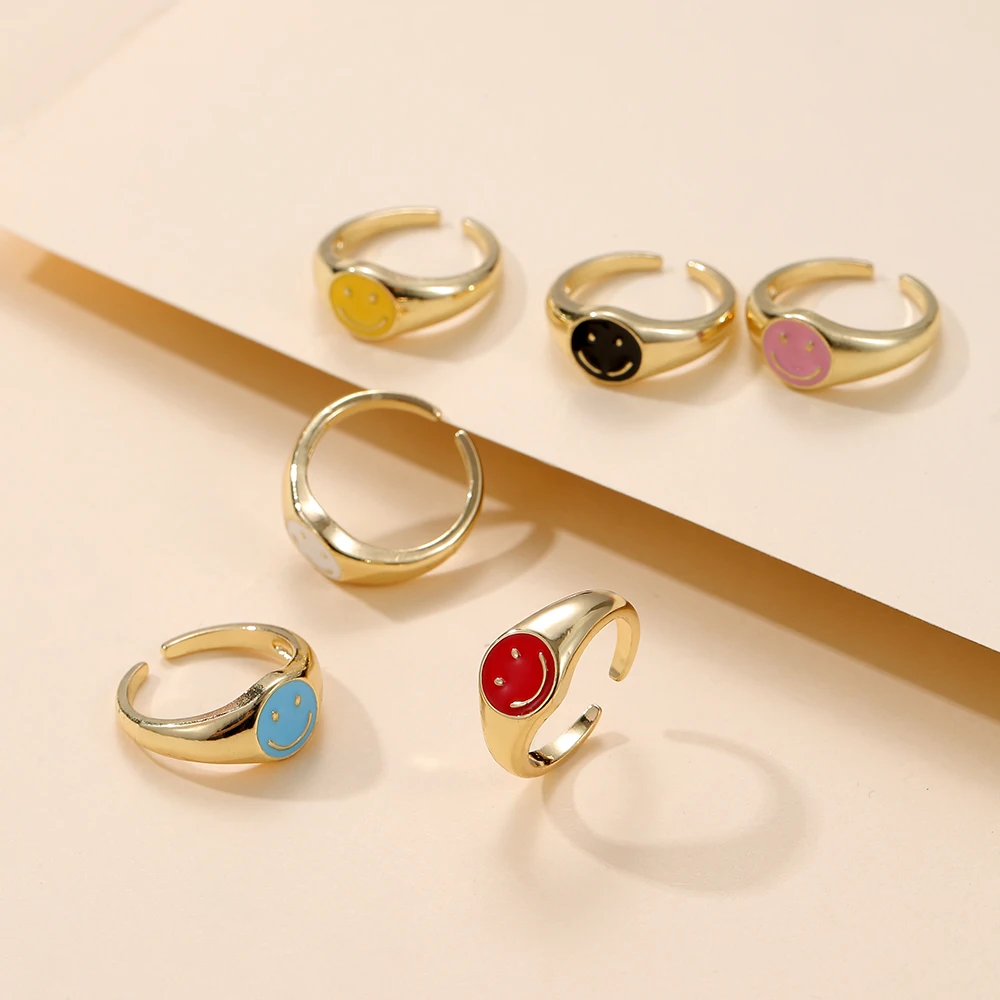 Женское эмалированное кольцо Lost Lady Ins, милое кольцо со смайликом для мужчин и женщин, ретро кольцо с круглой парой, кольцо из сплава золота вечерние ювелирные изделия, подарки