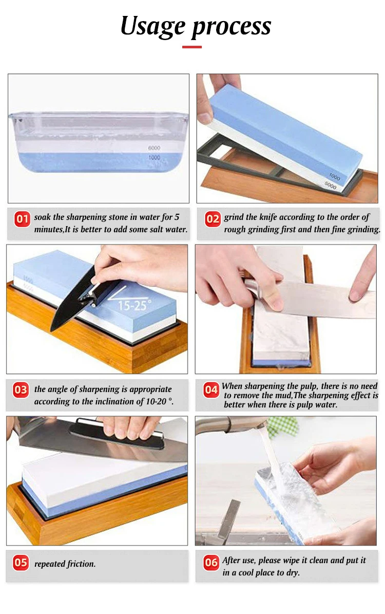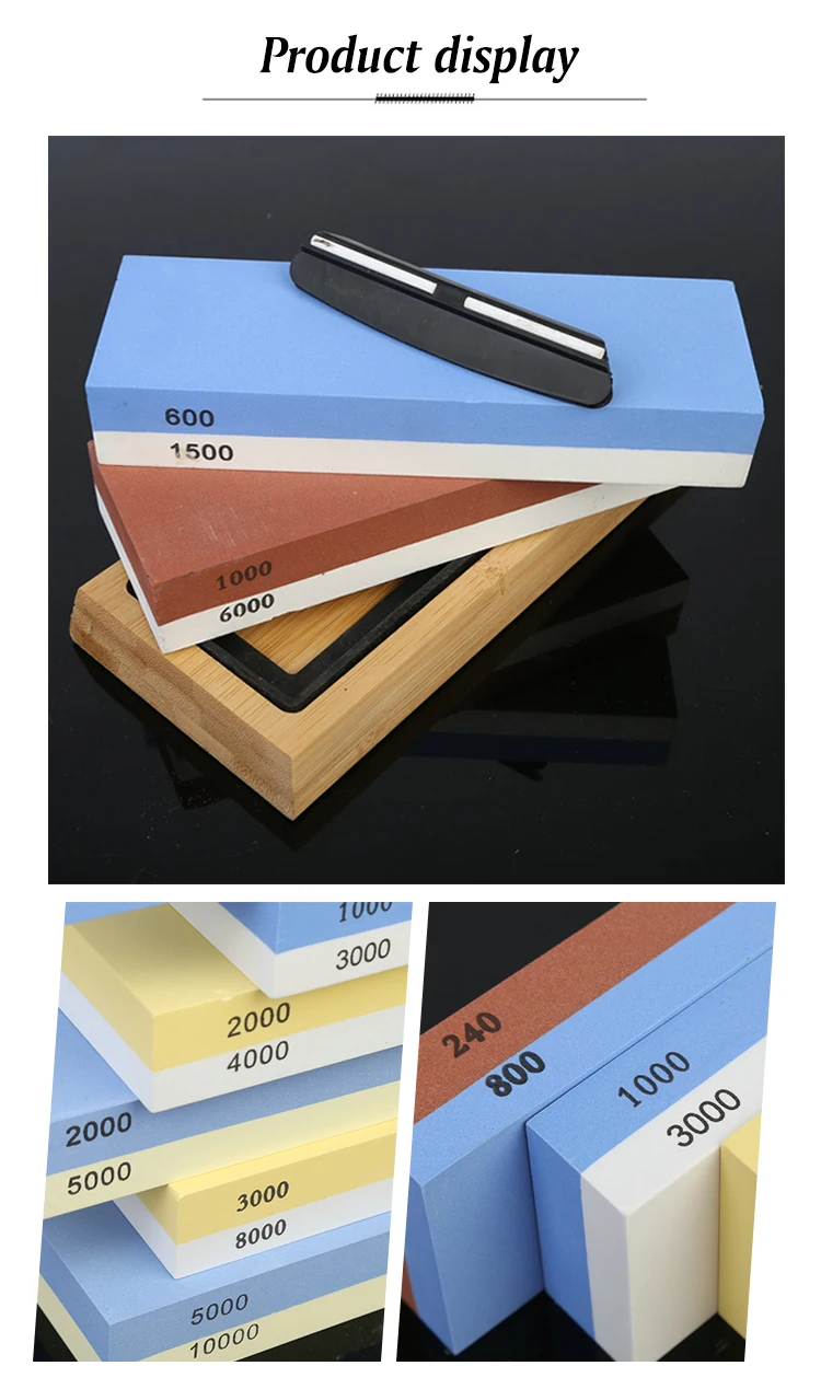 Точилка для ножей Профессиональная точилка для точильных камней для ножей Заточка камней шлифовальный камень водный камень кухонный инструмент масляный камень Характеристики продукции: Материал точильного камня: Изготовлен из профессионального белого корунда Ножей, точильный камень, Размеры: 7 "дюймов x 2,36" дюймов x 1,1 "дюймов (18 см x 6 см x 3 см) Бамбуковое основание Размеры: 8,2 "дюймов x 9" дюймов x 0,8 "дюйма (21 см х 9 см х 2 см) Двухсторонняя Зернистость: 240/800, 400/1000, 600/1500, 1000/3000, 1000/4000,1000/5000, 2000/5000, 1000/6000, 3000/8000 Особенности: 1. Высококачественный точильный камень для воды для обеспечения эффективного результата заточки. Наш набор для заточки воды очень удобен в использовании и Прост в сборке. Камень для заточки ножей использует воду для заточки, поэтому нет необходимости в дорогостоящей заточке/отточке масел и беспорядка во время заточки и его можно легко очистить с помощью воды. 2. Оснащен нескользящей основой из силикагеля, что гарантирует безопасность заточки. Нескользящее Силиконовое основание надежно удерживает точильный камень в месте, поэтому вам никогда не придется беспокоиться о том, что точильный камень соскальзывает с прилавка. Если вы выберете набор точильных камней, ваш единственный точильный камень с силиконовой основой для удержания камня внутри нескользящей бамбуковой основы, эта установка дополнительно обеспечит закрепление камня в одном месте во время заточки. 3. Этот остроконечный затвор может острым лезвием, будь то кухонные ножи, охотничий нож, карманный нож, ножницы, долото, лезвие, бритва. Использование инструкции: 1. Замочите камень в воде в течение 5-15 минут, а затем положите его на устойчивую платформу. Заточка ножей одним или двумя шагами определяется степенью тупой инструмент. Шаг 1: Грубое шлифование, используется для ремонта тяжелой плотины, подходит для тупых ножей. Удерживайте нож под углом 10 - 30 градусов, измельчайте край на поверхности камня вперед и назад с нежным давлением и остывайте до тех пор, пока край не будет достаточно острым. После заточки инструмента его необходимо отточить с помощью грубого помола через полгода. Также зависит от конкретной ситуации. Шаг 2: тонкое шлифование, необходимый шаг для устранения заусенцев кромки. Используйте более мягкое давление, повторите шаг 1 и отремонтируйте кромку до гладкости и остроты. Вообще говоря, используйте его один раз в неделю, чтобы сохранить ваше лезвие sharp. 2. Протрите его влажной тканью или краску водой после заточки инструмента, а затем высушите. Очистите поверхность камня мягкой щеткой и положите ее на воздух, чтобы она высохла. О товарах услуги: Если у вас есть какие-либо проблемы с вашей покупкой, пожалуйста, свяжитесь с нами, и мы ответим своевременно. После получения товаров, если у вас есть какие-либо проблемы, пожалуйста, свяжитесь с нами, и мы решим проблему для вас