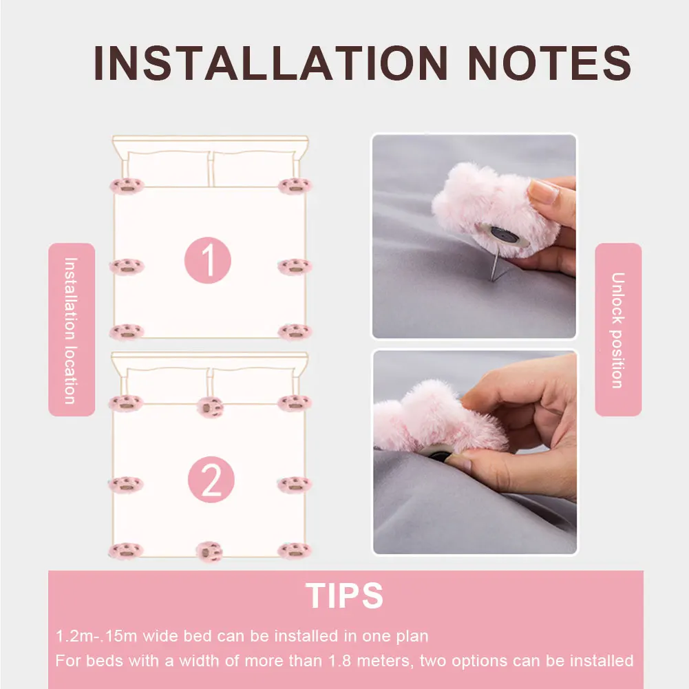* 2. Без отверстия слева, легко установить. Мы используем противоскользящий дизайн в полоску, который имеет более высокую прочность на трение и может плотно держать одеяло.