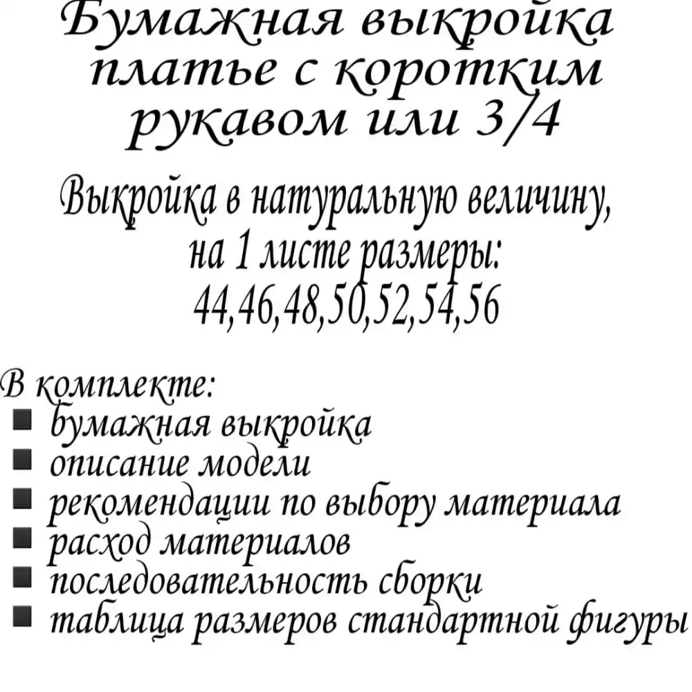 Отзывы о Выкройка женского платья с двумя рукавами размеры 44 46 48 50 52 54 в натуральную