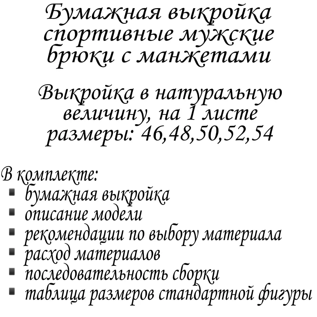 Отзывы о Выкройка спортивных мужских брюк с манжетами размеры 46 48 50 52 54 в натуральную