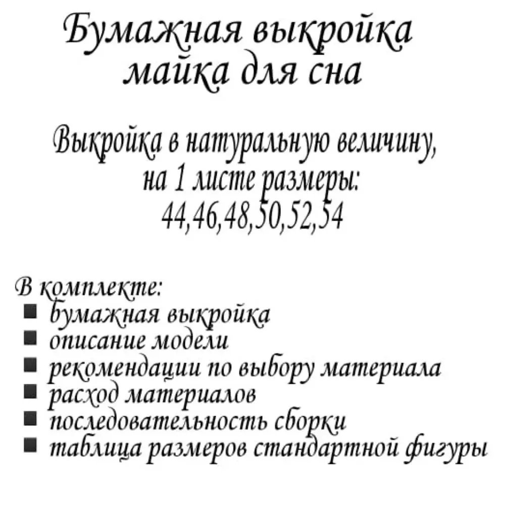 -Pattern on paper, on 1 sheet sizes 44,46,48,50,52,54
