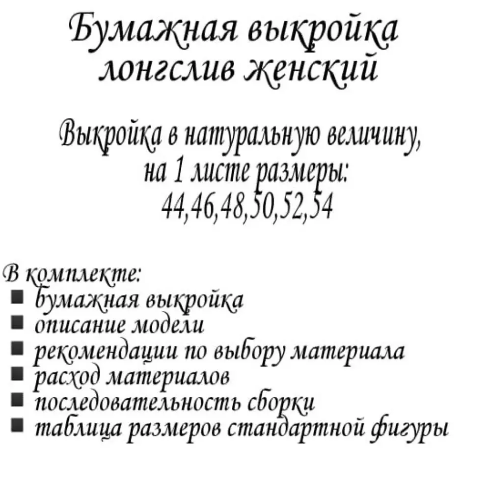 -Pattern on paper, on 1 sheet sizes 44,46,48,50,52,54