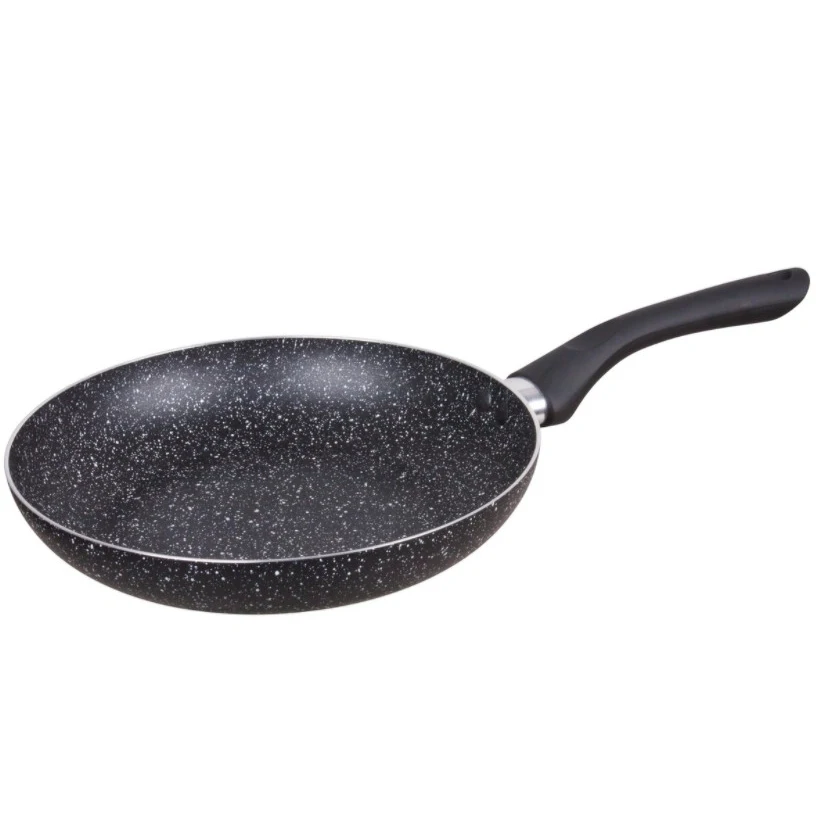 Диаметр 20 см, высота 4 см, толщина стенки 2,5 мм. Внутри: 3-х слойное мраморное антипригарное покрытие. Снаружи: 3-х слойное жаропрочное мраморное покрытие. Цветная бакелитовая ручка с покрытием Soft touch. Подходит для использования на всех типах плит. Подходит для чистки в посудомоечной машине.