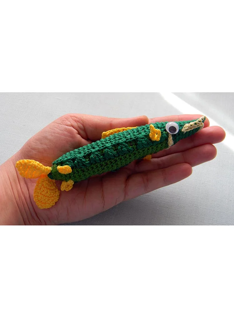 Щука выполнена из хлопчатобумажной пряжи, набита