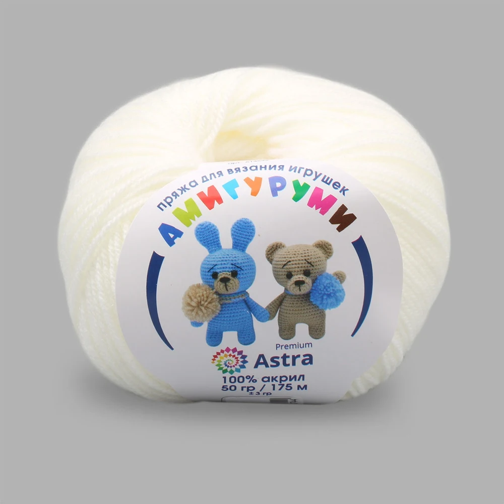 Пряжа Astra Premium "Амигуруми", 175 м, 6 мотков по 50 г, цвет: 002 отбелка (количество товаров в комплекте: 6)