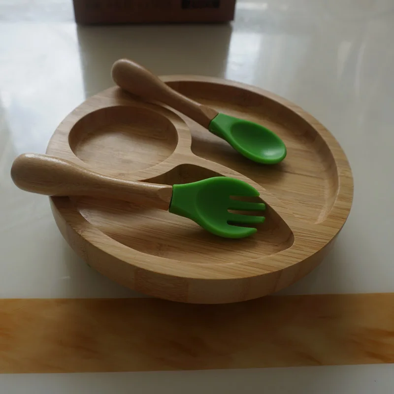 Отзывы о Тарелка для кормления ребенка деревянная с силиконовой присоской вилка ложка