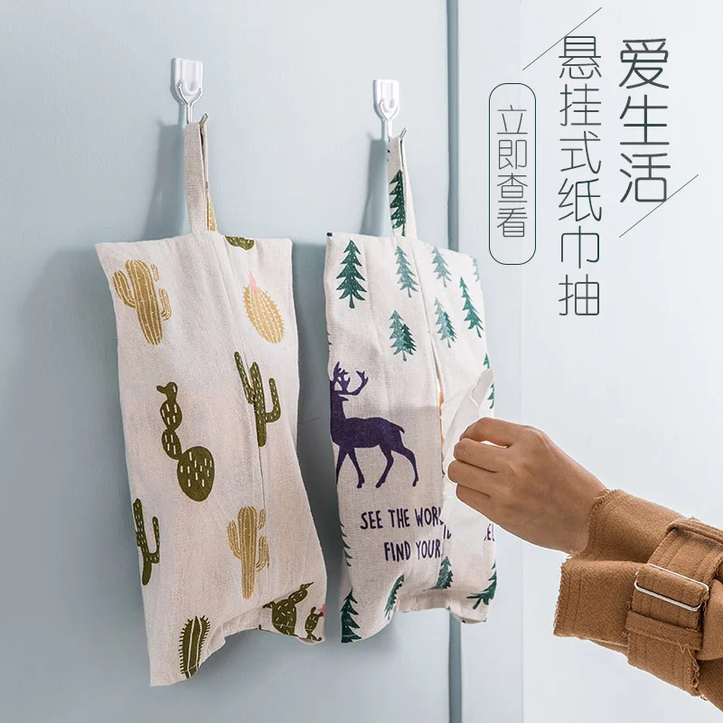 Fabric Cartoon Tissue Box Cover Handkerchief Napkin Holder Car Towel Napkin Papers Case Box Printing Tissue Case Decoration