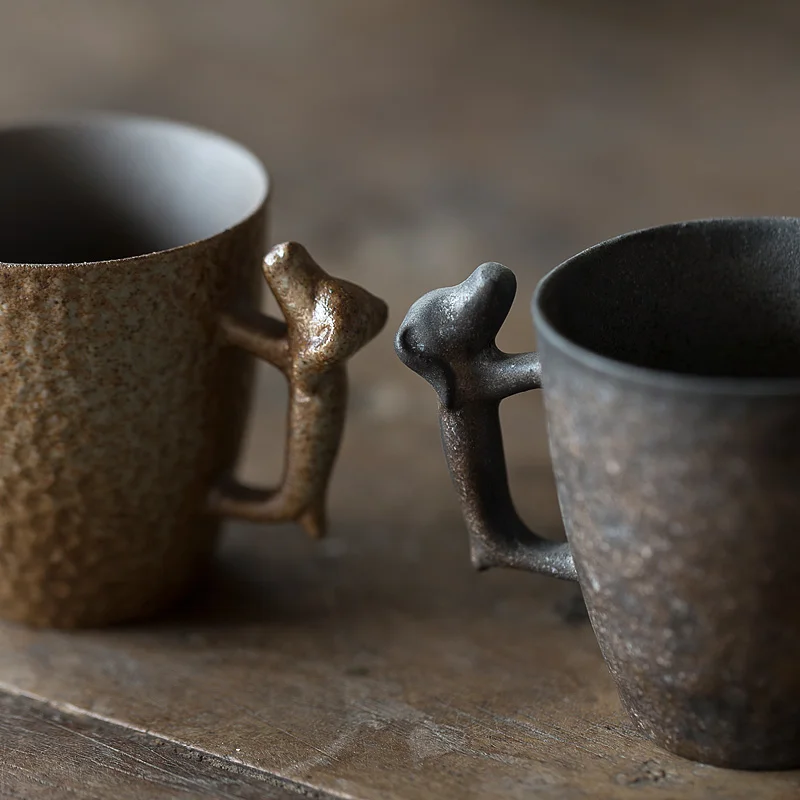 Благородная чашка, 100 мл, китайский Ретро стиль, индивидуальная керамическая ручка, чайная чашка, кофейная кружка, китайская грубая керамика, чашка ручной работы