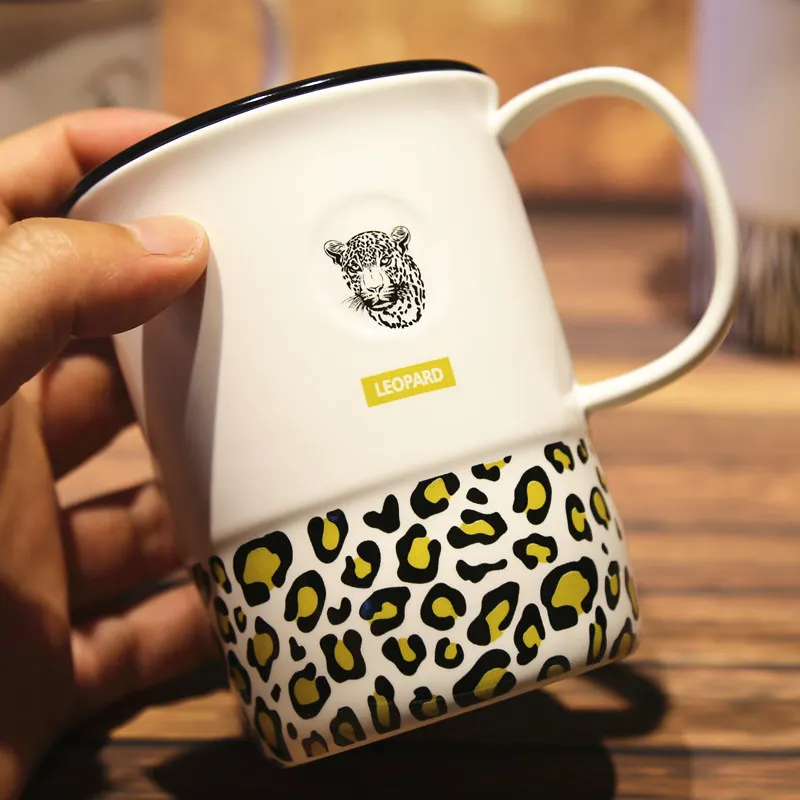 Уникальная керамическая чаша в африканском стиле с животными, керамическая кружка с леопардовым принтом жирафа зебры, кофейные чашки ручной работы, чайная чашка с кружкой для молока, уникальные подарки