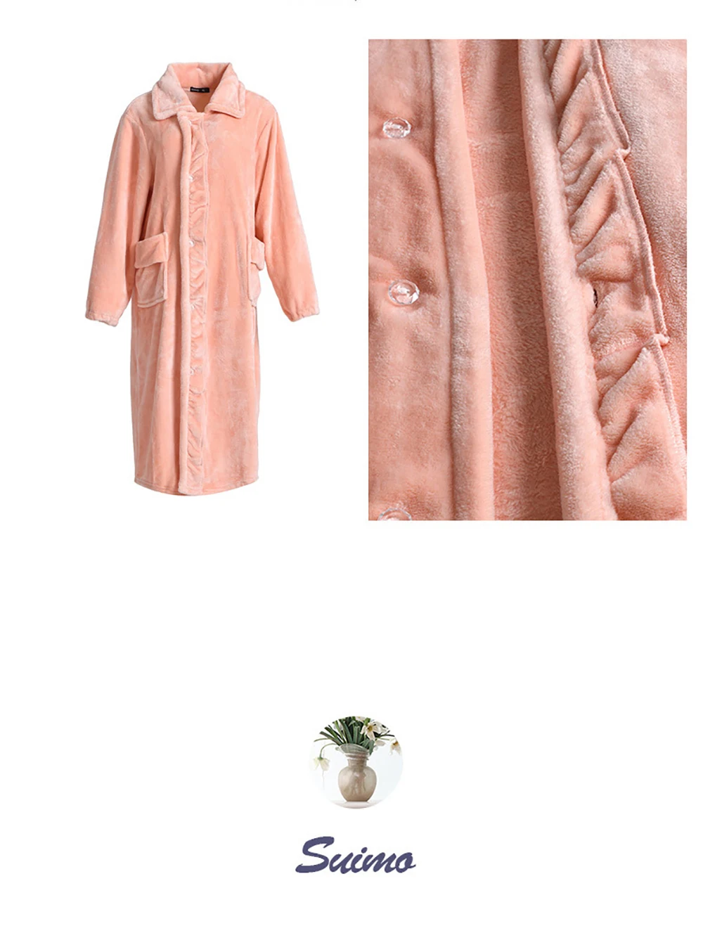 Супер Теплый фланелевый Халат кимоно женский осенне-зимний утепленный удлиненный халат женский модный халат невесты на пуговицах с карманом ночная рубашка платья