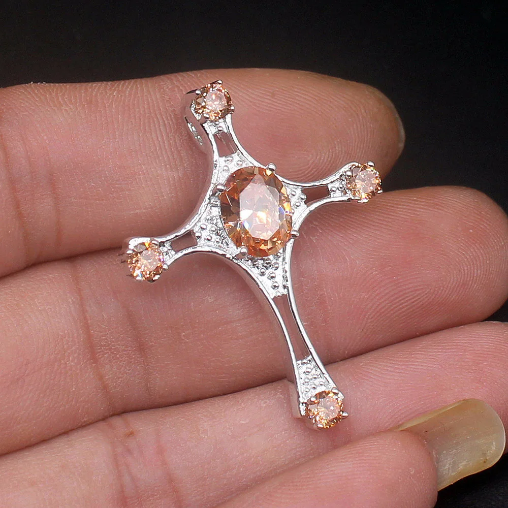 Ювелирные изделия Gemstonefactory большая акция 925 серебряный крест медовый топаз женское ожерелье для подарков подвеска 20213854