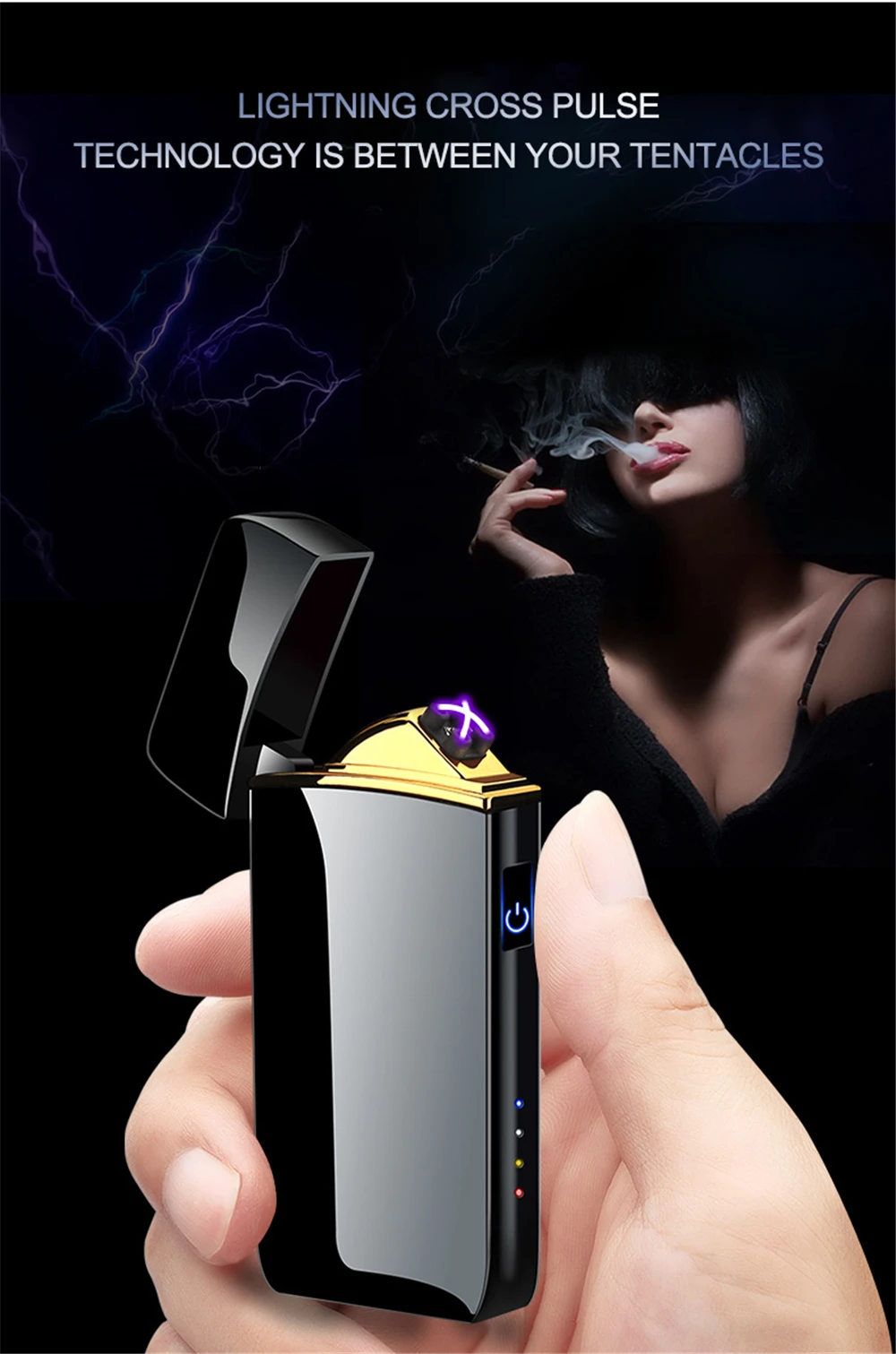 Портативная двойная электрическая зажигалка с usb-зарядкой, с сенсорным управлением, ветрозащитный светодиодный дисплей, металлическая зажигалка, аксессуары для курения