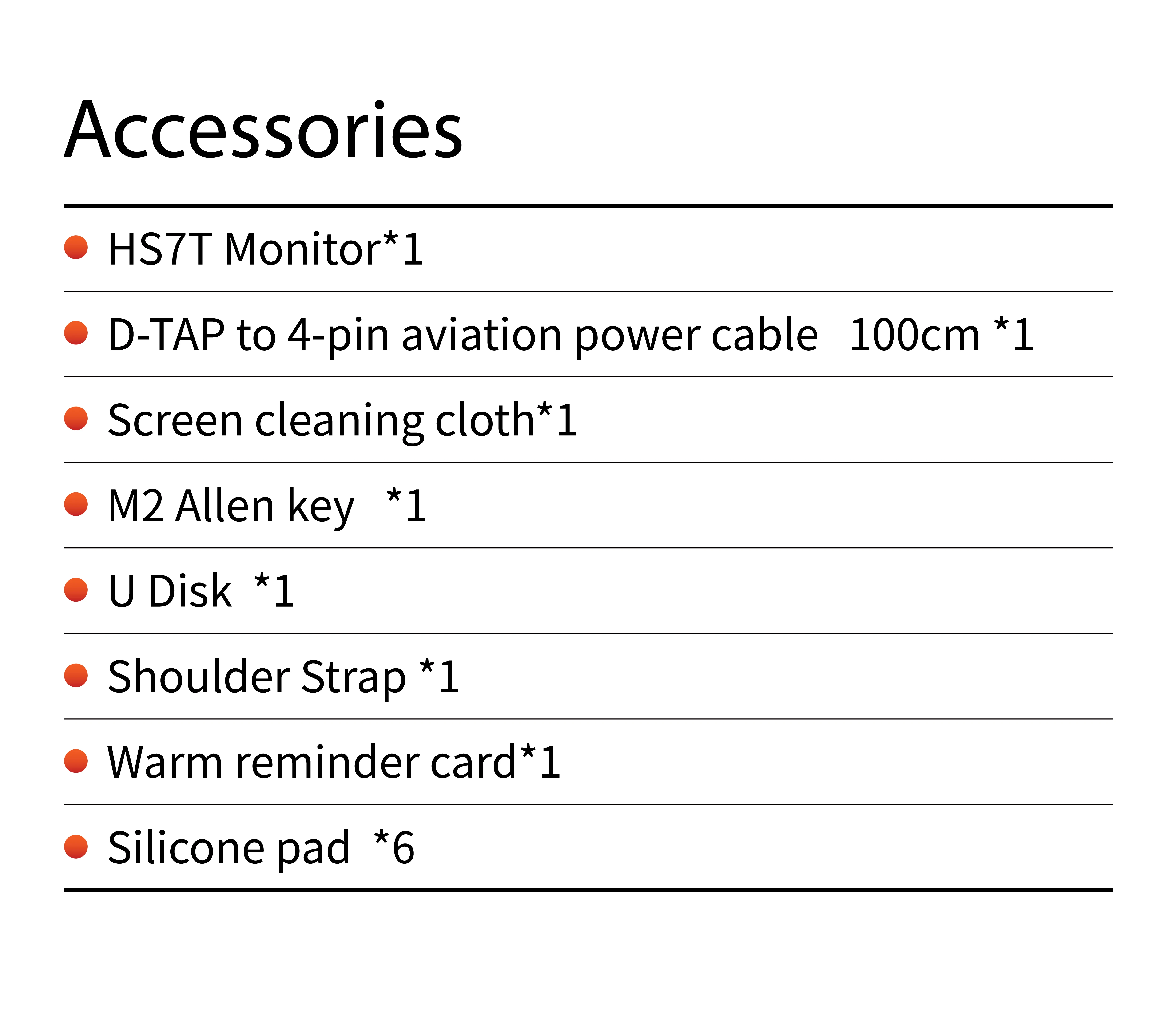 В HS7T Metal Edition сочетает в себе большой 7-дюймовый HDR экран с 1200nit Калиброванные пиковое значение яркости и легкий дисплей-только функцию оригинальный HS7T. В HS7T Metal Edition может использоваться при сильном светильник окружающей среды для того чтобы контролировать сигналов до 4K 60p через HDMI или SDI. Идеальный монитор режиссера, монитор фокуса, видеокоммутатор, очень подходит для видеоблоггеров, показывающих камеру.