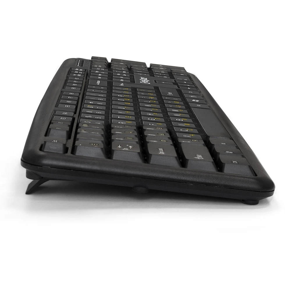Мембранная, 104 клавиши, проводная. Интерфейс USB, длина кабеля 2.1 м. Оптический сенсор мыши, разрешение 1000 dpi, 3 кнопки, длина кабеля 1.7 м. Совместимость с ОС :Windows XP/7/8/8.1/10; Mac OS; Linux.