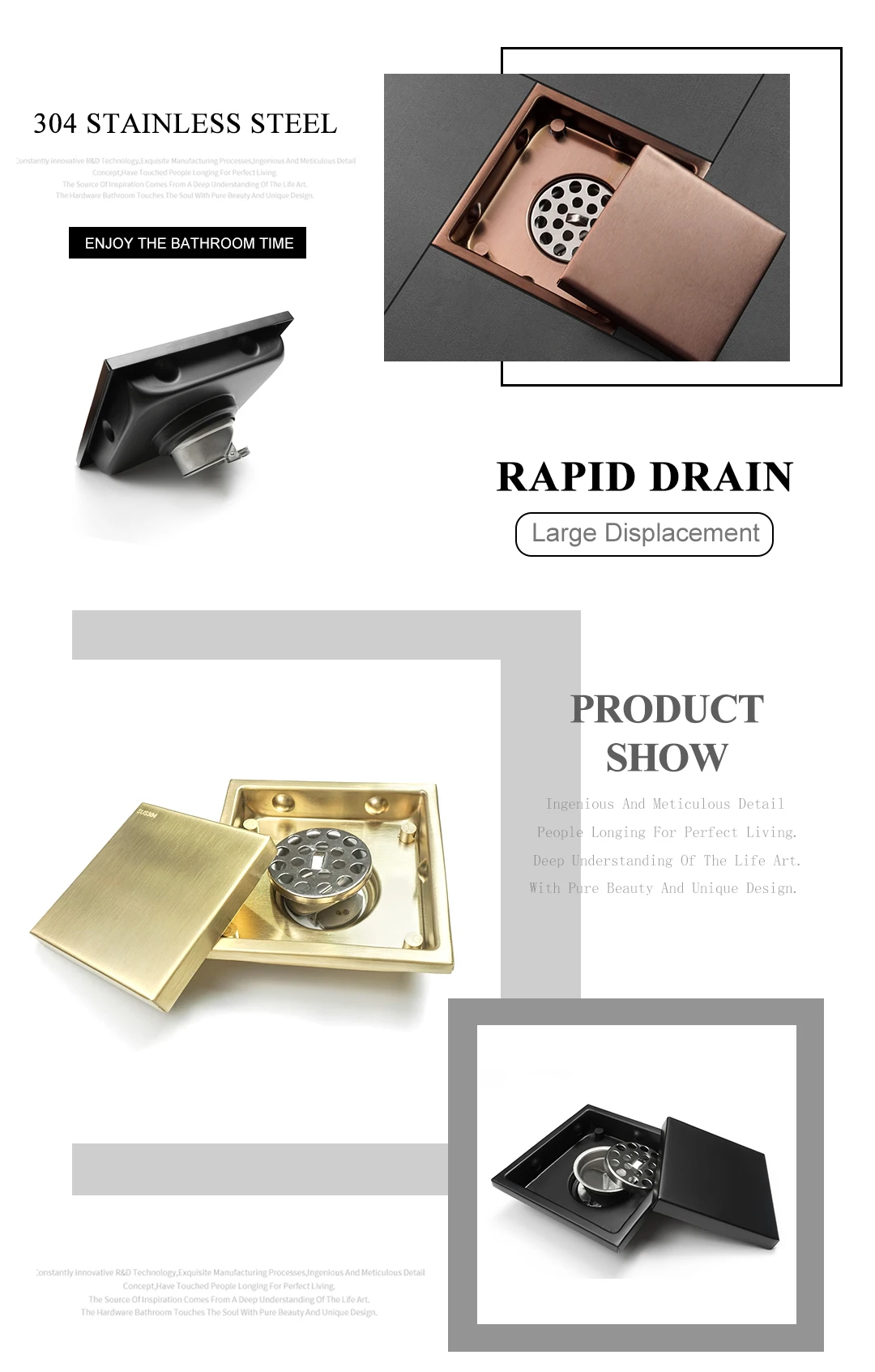 Отзывы о Скрытая квадратная кафельная вставка золотого цвета решетки для пола слив душа