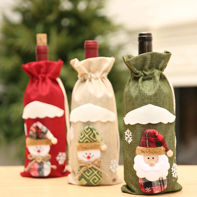 Рождественские Чехлы для бутылок вина, рождественские украшения праздничный покрытие для бутылки в виде Санта-Клауса, домашние настольные Декорации для вечеринок