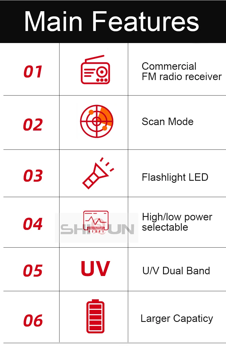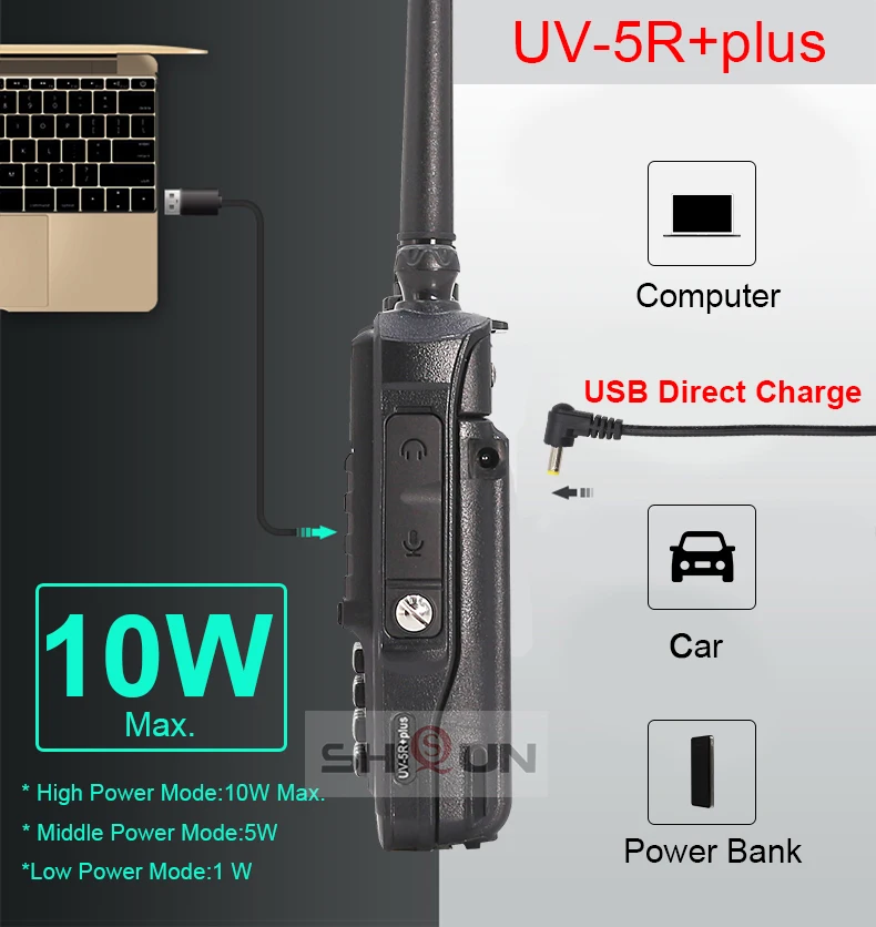 UV-5R + Plus10 Вт Высокая мощностьВысокий/средний/низкийРежимы TRI-POWER