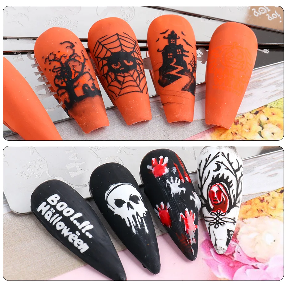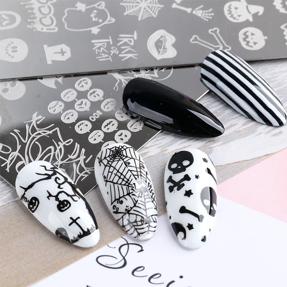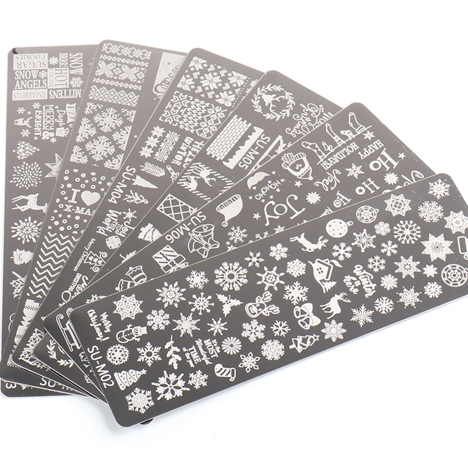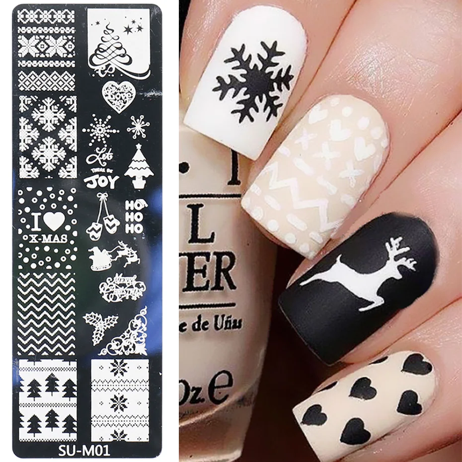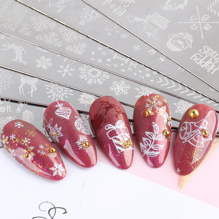 Снежинка Олень Рождество ногтей штамповки пластины передачи Шаблон трафарет Гель-лак Санта-Клаус Хэллоуин зимний Декор