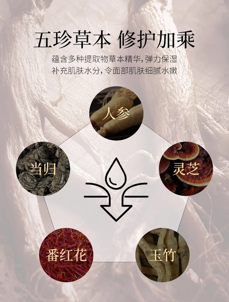 Коптит chinensis, паеония лактифлора, гиалуроновая кислота, экстракт красного женьшеня