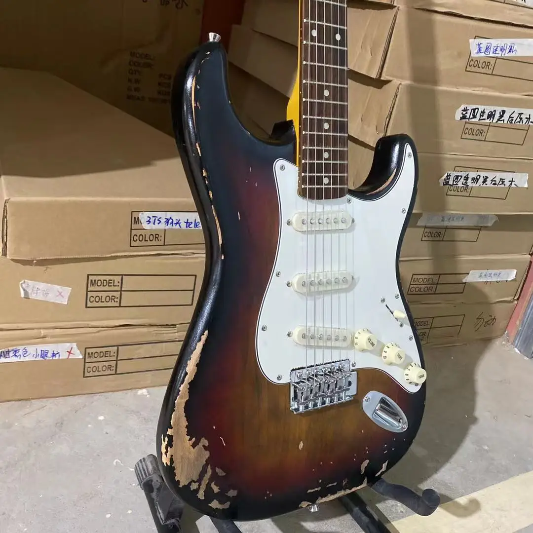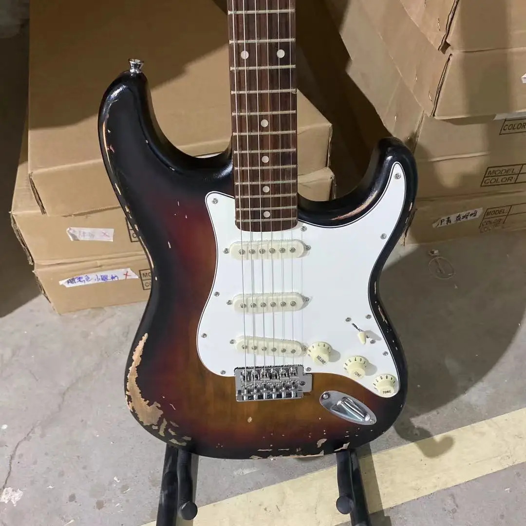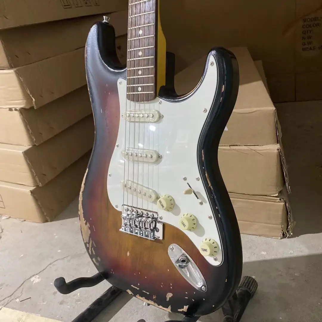 Состаренная электрическая гитара, винтажный солнечный цвет, алое тело, палисандр, гриф, 100% человек, сделано, высокое качество, гитара, бесплатная доставка