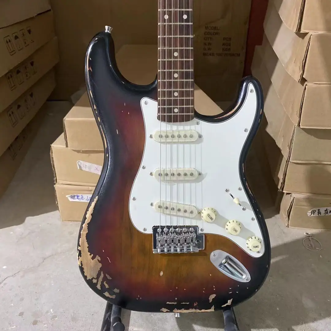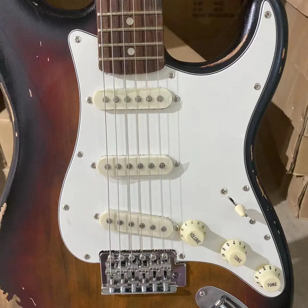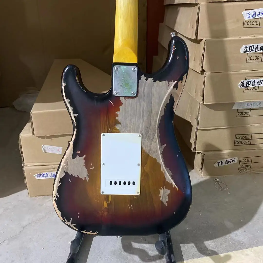 Состаренная электрическая гитара, винтажный солнечный цвет, алое тело, палисандр, гриф, 100% человек, сделано, высокое качество, гитара, бесплатная доставка