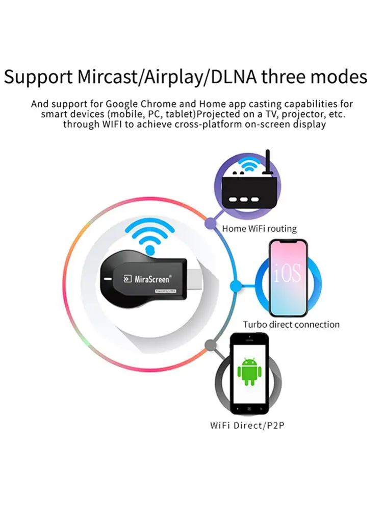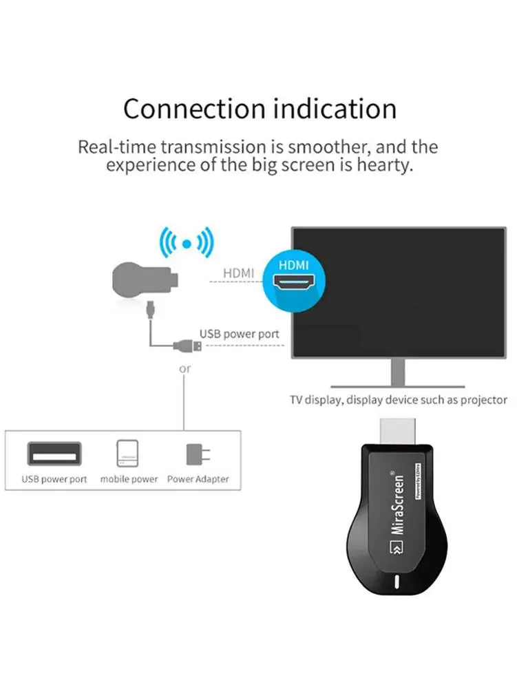 Описание:1. Беспроводной дисплей: Этот беспроводной приемник может беспроводным образом Зеркалировать или транслировать ваши мобильные устройства на телевизор/проектор/монитор. Легко делитесь видео, фотографиями и фильмами на большой экран. Сделайте свой телевизор smart TV. (Не для проектора)