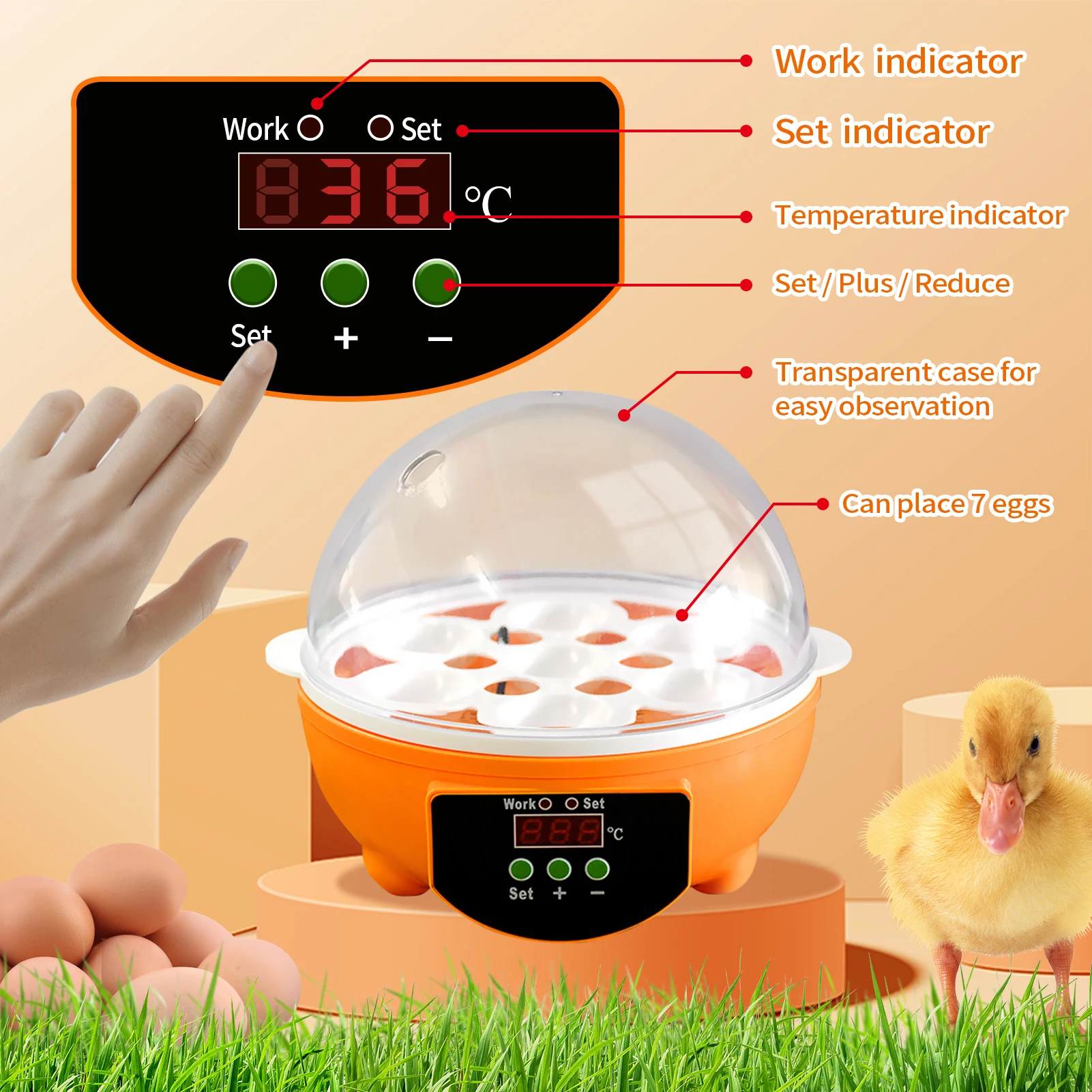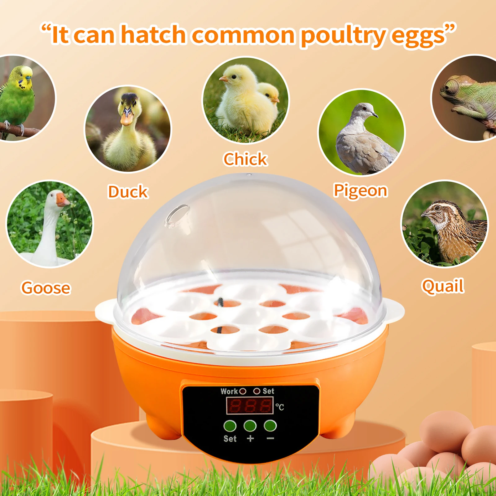 -Подходит для инкубации всей птицы: кур, уток, гусиных животных, индейки и т. Д.