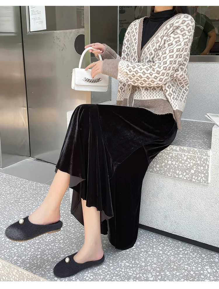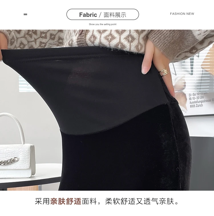 Отзывы о Юбка средней длины для беременных золотистая бархатная Осенняя черная с высокой