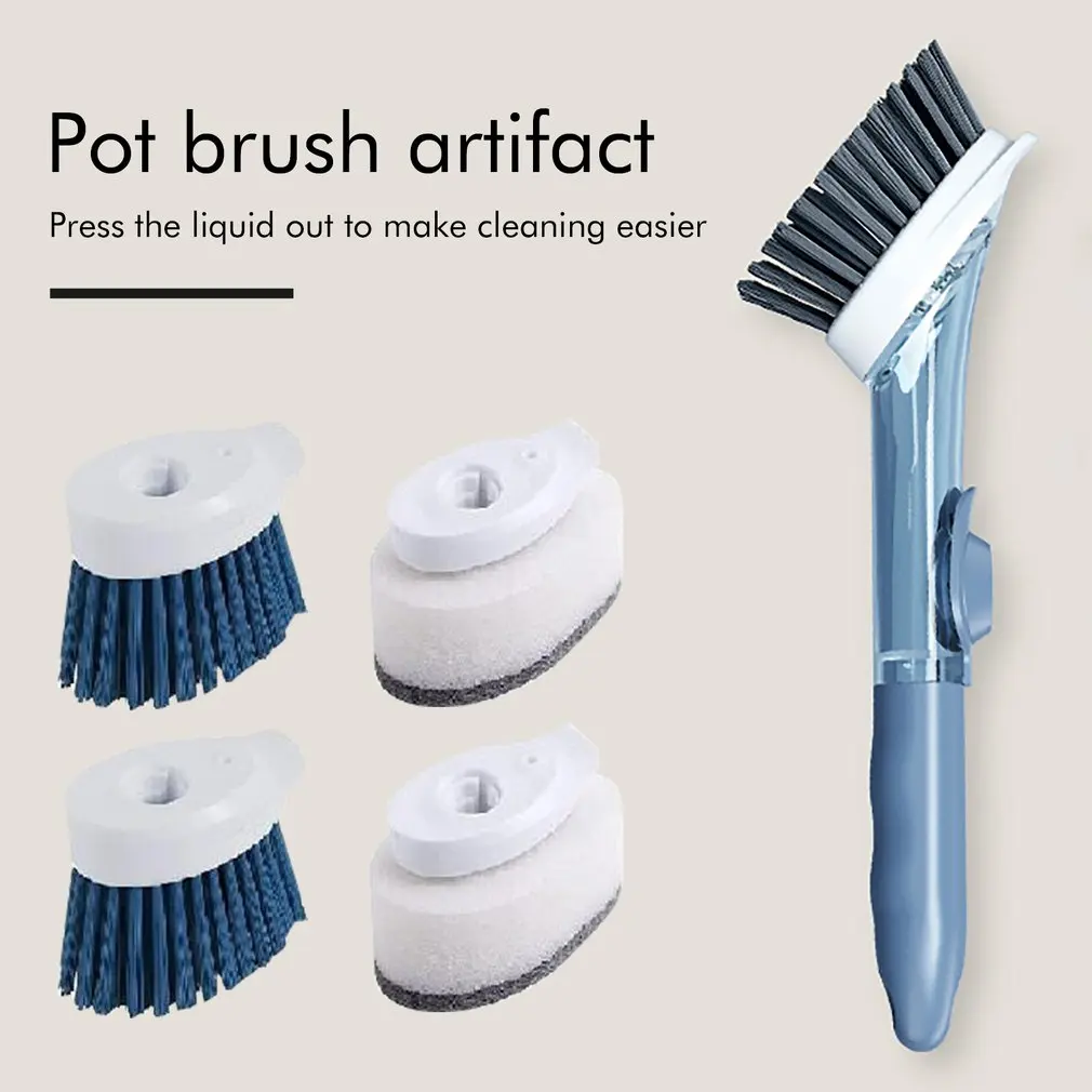 Наш набор кистей для посуды обеспечивает головку щетки PP, головку щетки TPR и две губчатые головки щетки, очень удобно и эффективно для чистки кастрюль, сковородок, печей, антипригарной посуды и многое другое.