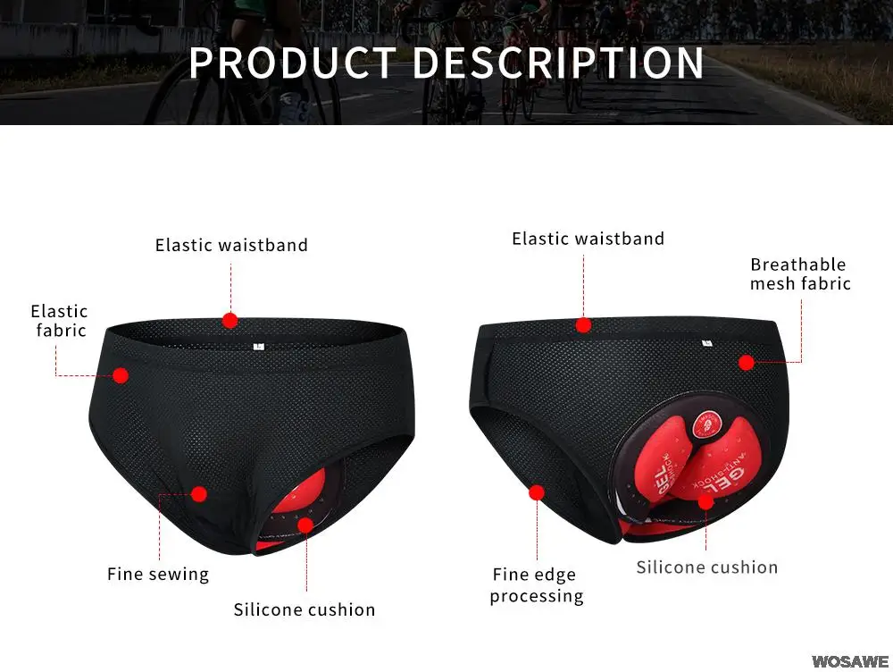 - WOSAWE Мужская 3D подушка легкий Быстросохнущий горный велосипед шорты для верховой езды