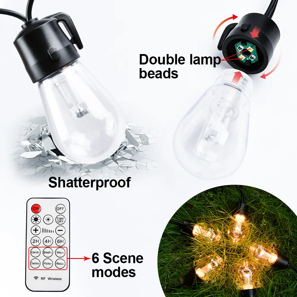 Отзывы о Светодиодная гирлянда с регулируемой яркостью 48 футов 15 лампочек IP65 2700K |