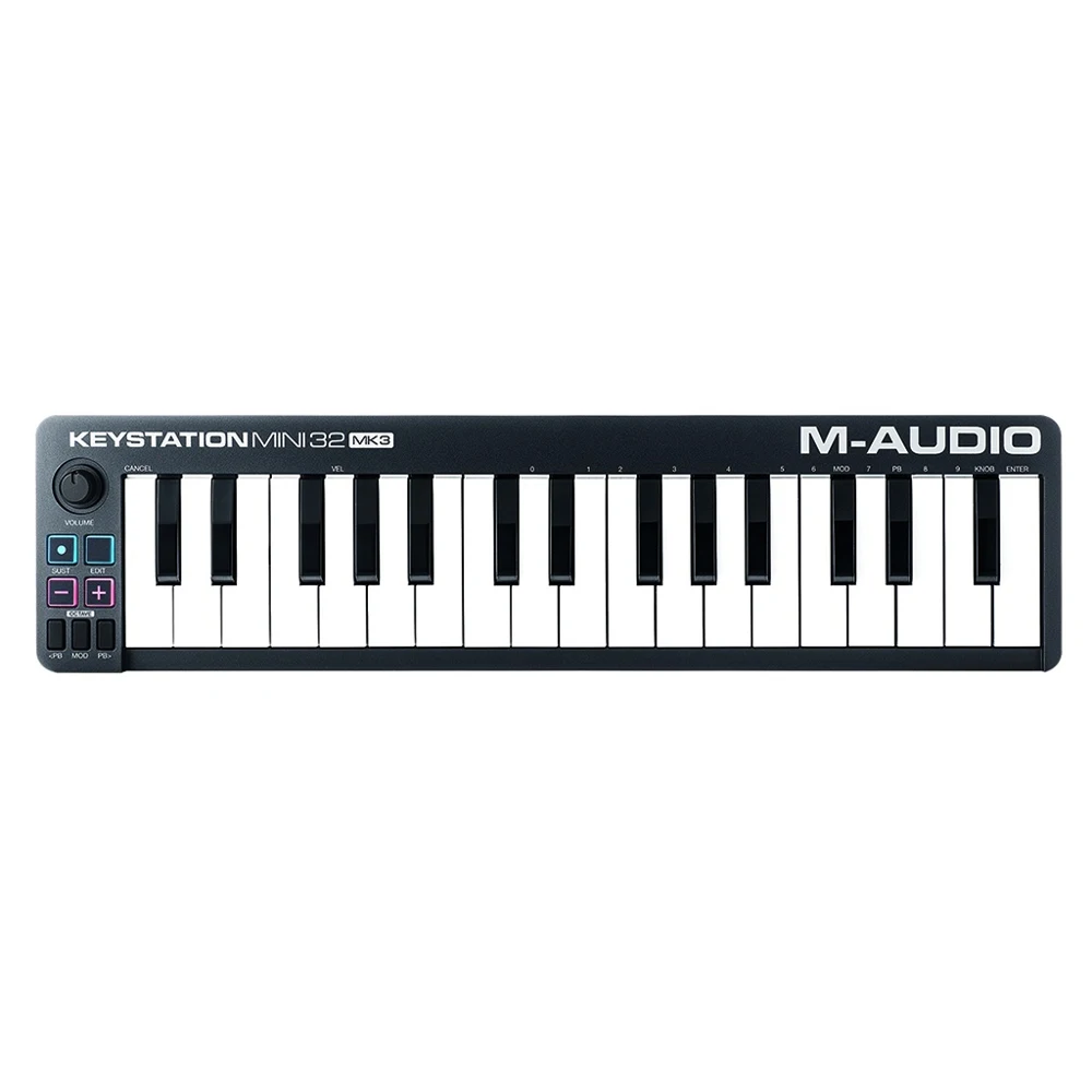 MIDI-контроллер M-Audio Keystation Mini 32 MK3 — это великолепная миниклавиатура из обновленной линейки самых популярных в мире клавиатур, предназначенных для секвенирования музыки и работы с виртуальными музыкальными инструментами. В данной модели используется клавиатура с чувствительными к скорости нажатия клавишами синтезаторного типа, программируемыми кнопками контроля, питч-бенда и модуляции, кривыми настройки чувствительности клавиш.