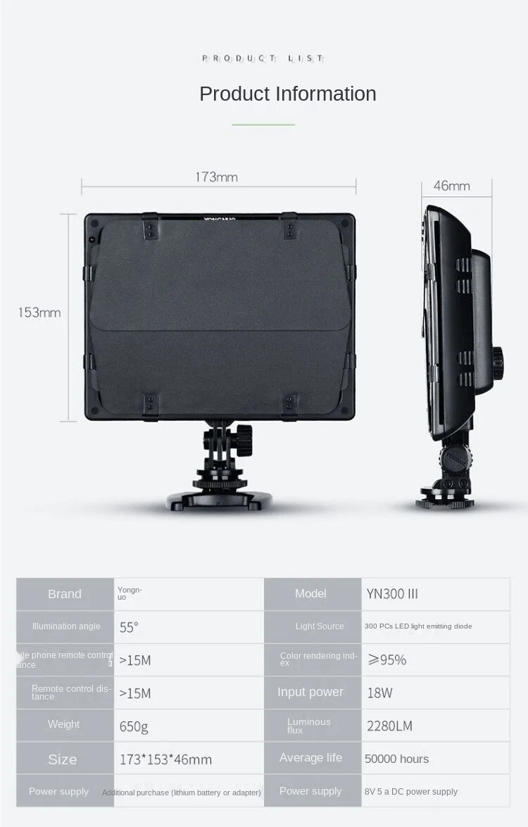 Отзывы о Светодиодсветильник Yongnuo YN300 III YN300III 3200k-5500k CRI95 с адаптером питания переменного