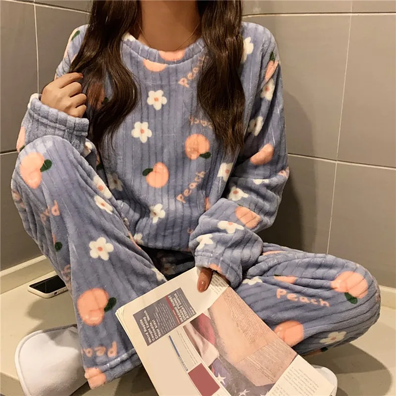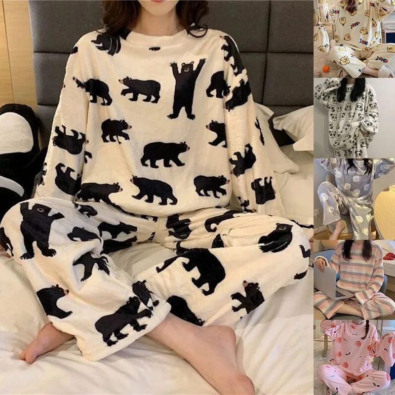 Отзывы о Женский Теплый фланелевый пижамный комплект с принтом тонкая бархатная Пижама