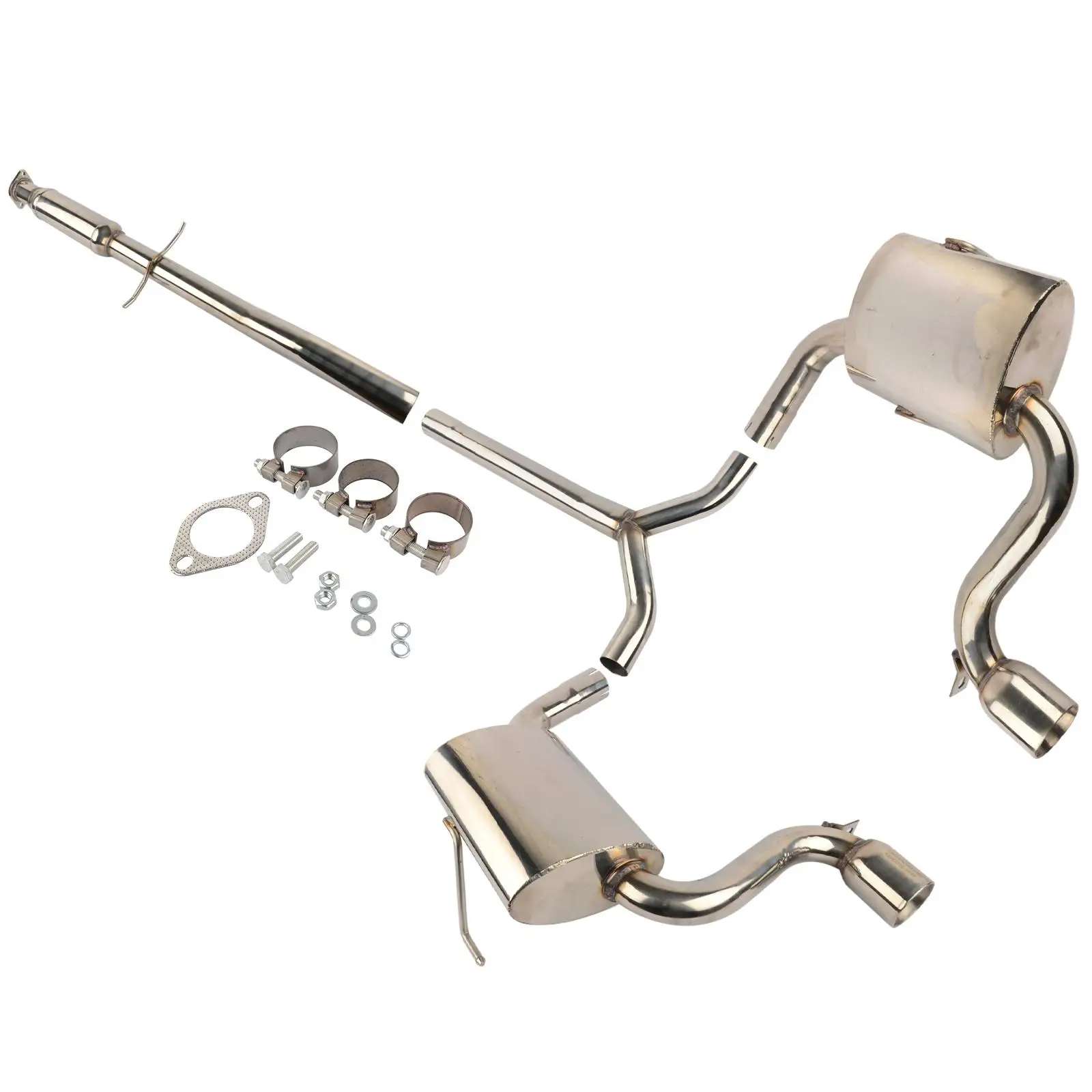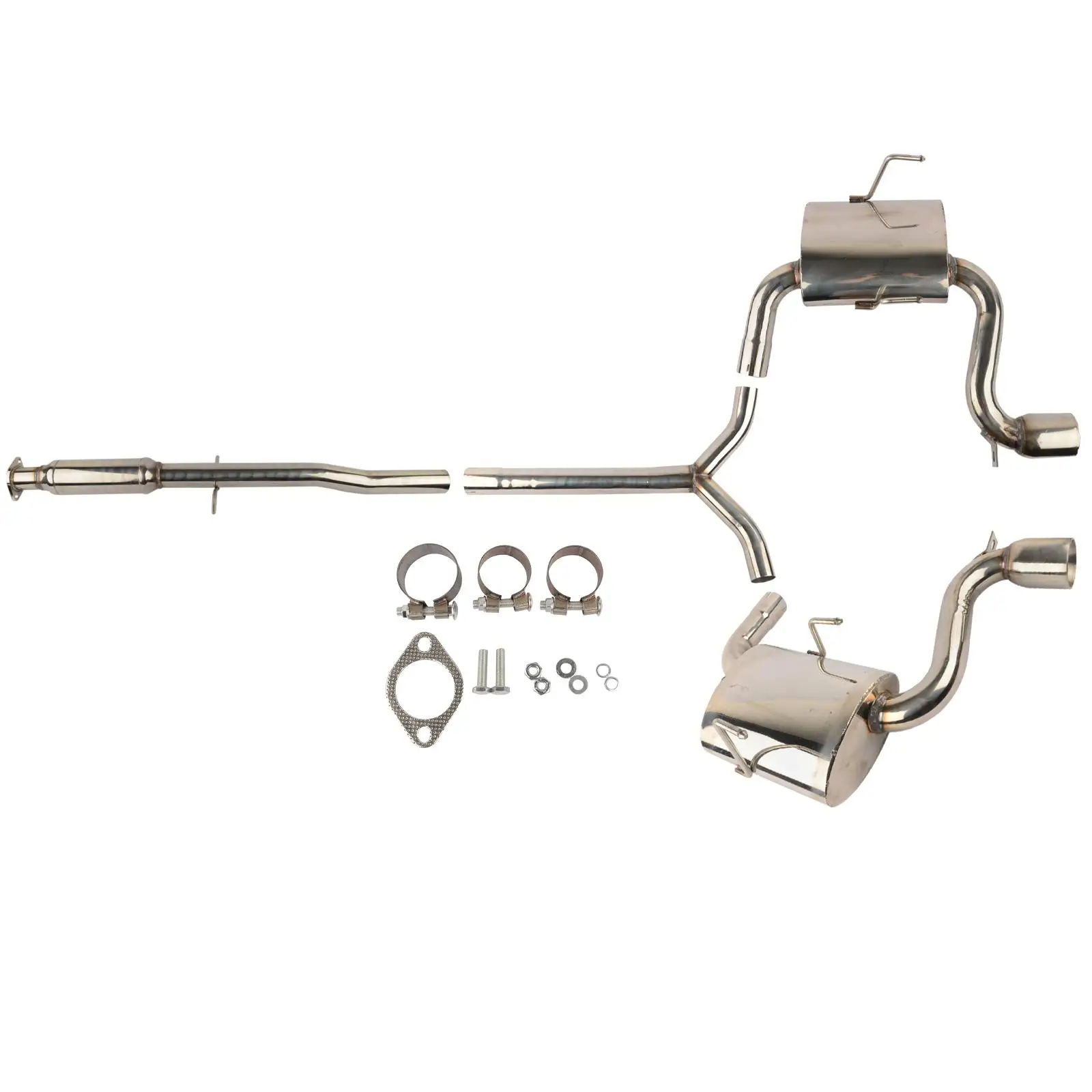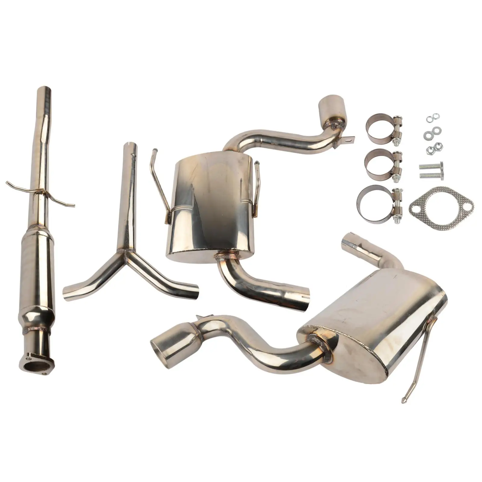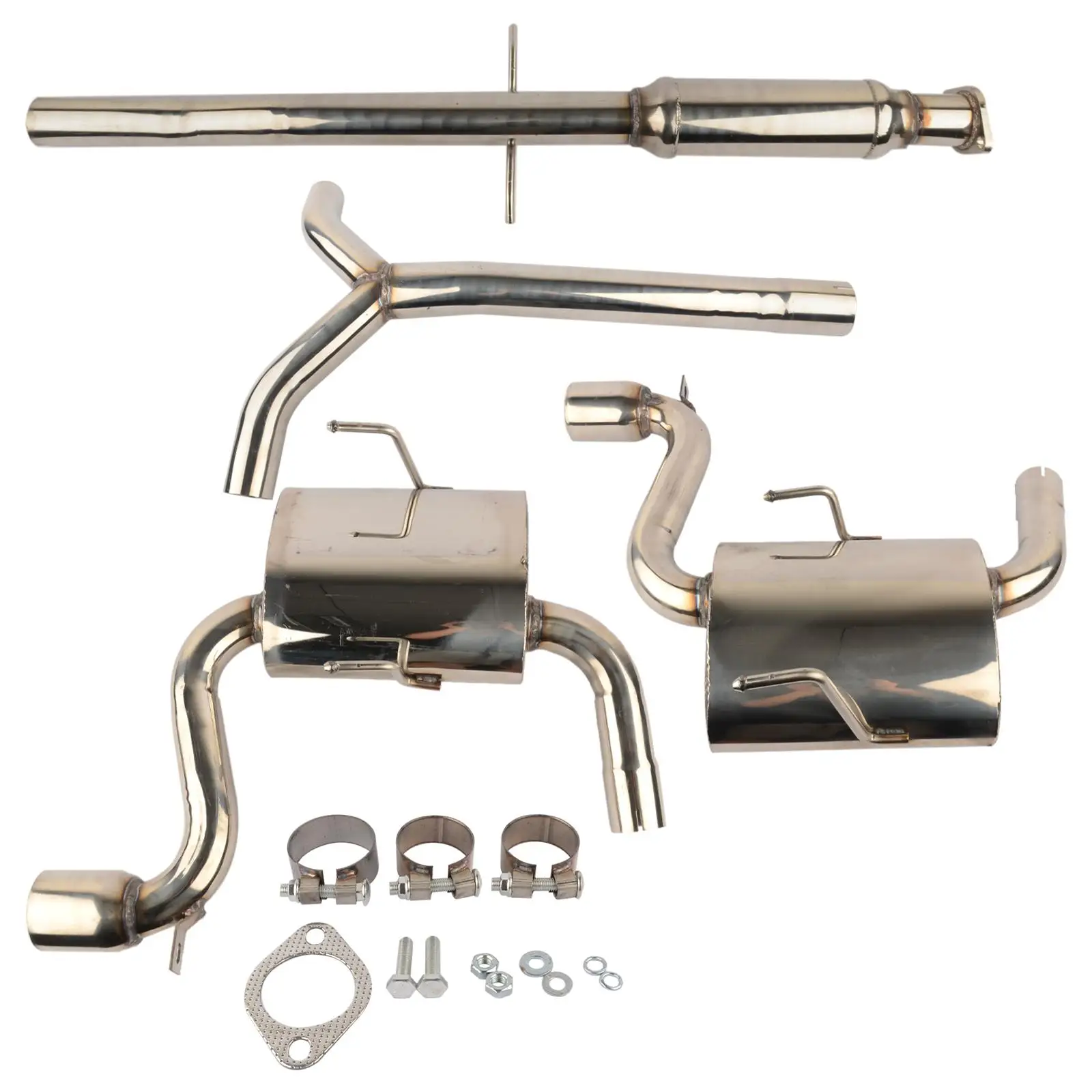 Изготовлен из нержавеющей стали T304 Mandrel0-bends Высокая производительность гонки 4 шт дизайн Сварные Тиг Фланец станка с ЧПУ для сопротивления давлению и коррозии Агрессивный глубокий звук 2,35 "вход/Глушитель 3" OD двойной выхлопной наконечник Диаметр основного трубопровода 2,35 "/2,35"