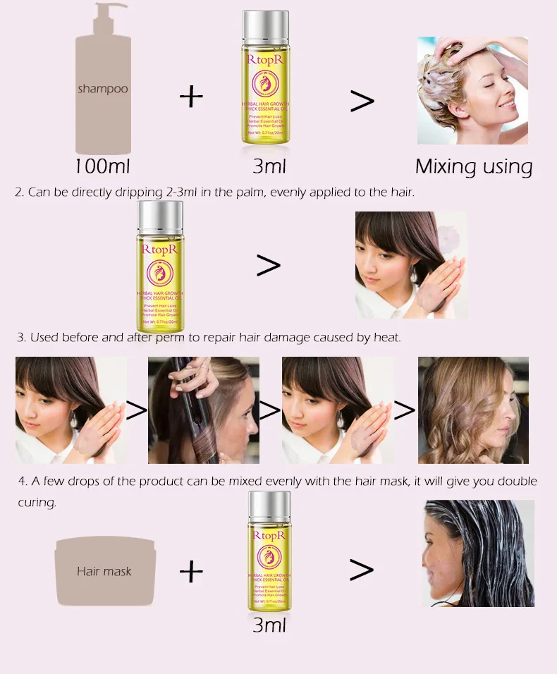 Для ускорения роста волос, восстановления поврежденных волос, долгосрочное использование может предотвратить