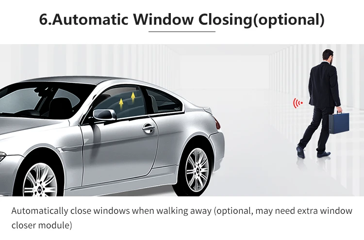13. Автоматическое закрытие окна (дополнительно, может потребоваться дополнительный модуль приближения окна, например, 4 дверных доводчика, пожалуйста, смотрите https:/store/product/In-Stock-Universal-4-door-power-window-closer-module-automatic-rolling-up-compatible-all-car-alarm/617039_32218451614?spm=2114.12010612.8148356.6.68b12f3d0ZKA56)