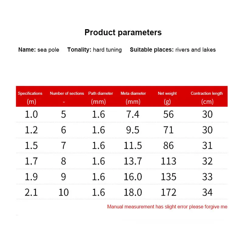 1,9 метров параметры: сужение длиной 35 см, во-первых, диаметр 1,8 мм, юаней диаметр 16,2 мм, раздел номер 9 мм Вес нетто: 141 г